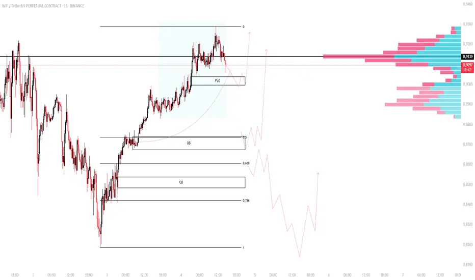 WWIF снял внешнюю ликвидность и протестировал премиум OB. Реакция рынка подтвердила удержание медвежьего приоритета. Под ценой остаётся FVG в диапазоне 0.5–0.618, который тянет цену вниз.