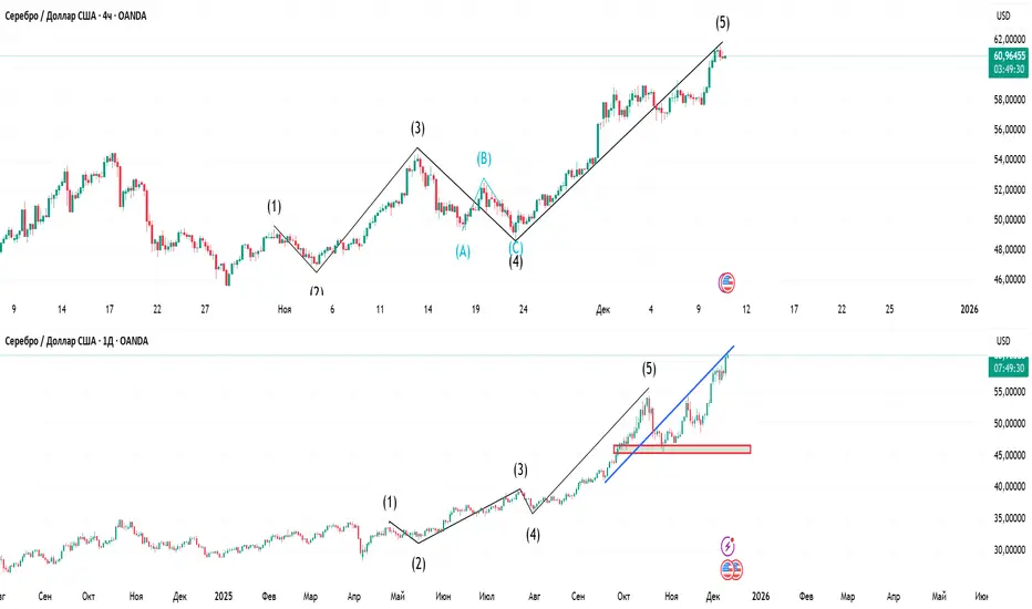 Таким образом, XAGUSD находится в фазе отката, и ближайшие шаги рынка определят, перерастёт ли коррекция в более глубокое снижение или станет подготовкой к новому импульсу.