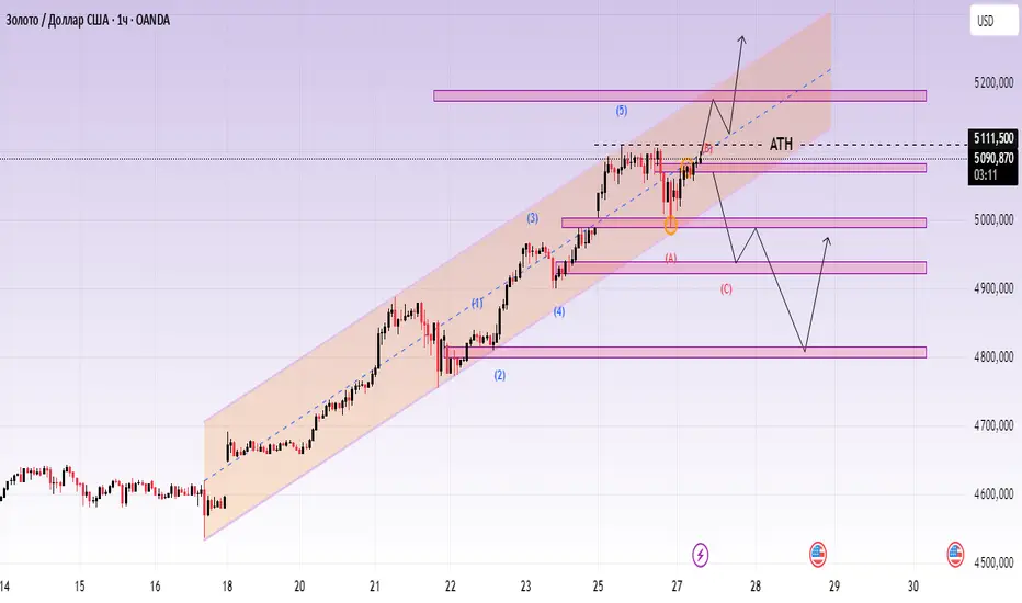Если цена потеряет основную поддержку, зона 4920–4950 станет следующим ключевым уровнем для наблюдения за реакцией покупателя и защитой тренда.