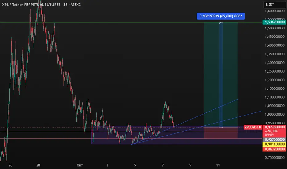 Токен подошел к ключевой зоне интереса, от которой ранее видели реакции. Структура позволяет рассчитывать на продолжение движения вверх. Входим в лонг.