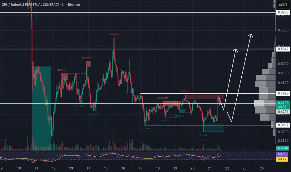 Для потенциального шорта хотелось бы увидеть возврат в зону 0.5342$ - 0.6283$, где ранее проходили ключевые объемы.
