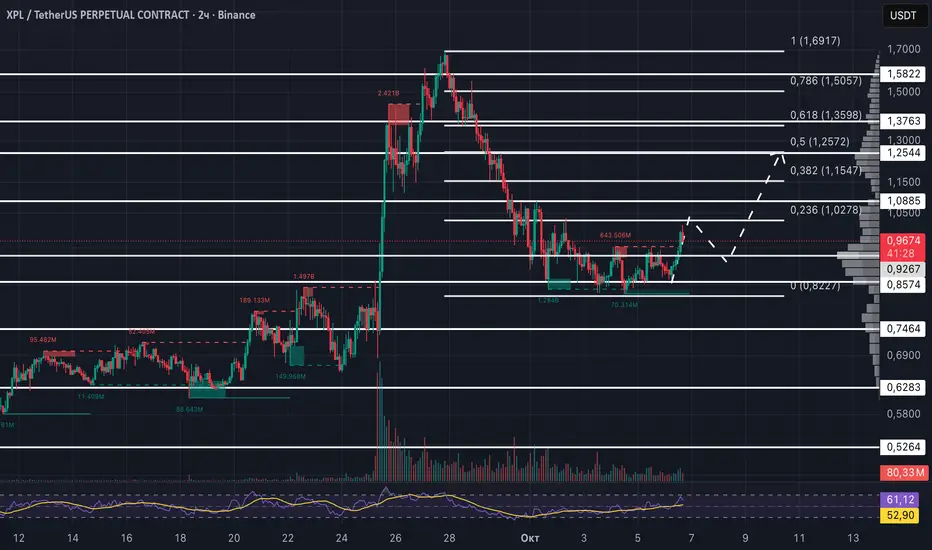На текущий момент рассматриваю лонг от отката — в идеале в зоне 0.9300$ - 0.9000$ при подтверждении объёма и удержании выше ключевого уровня.