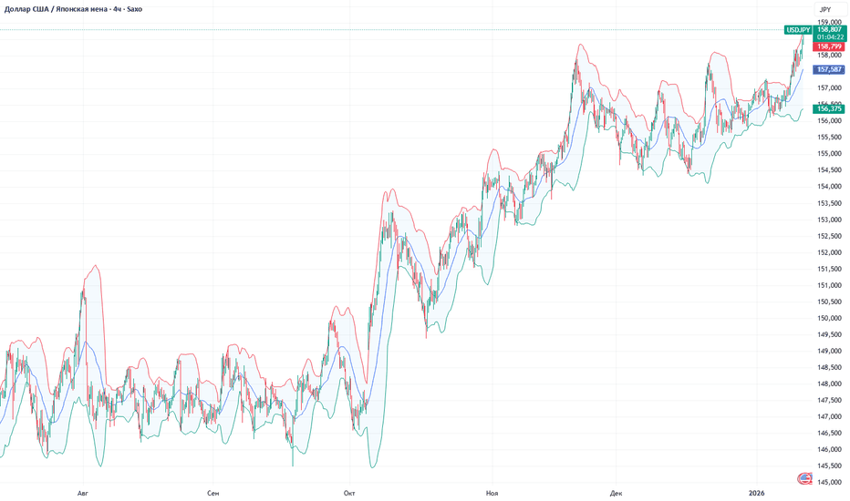 Фундаментальный анализ рынка за 13.01.2026 USDJPYUSD/JPY удерживается у максимумов года вблизи 158,300–158,700. Иена остаётся под давлением из-за внутренней политической неопределённости в Японии: обсуждение возможных досрочных выборов усилило ожидания более мягкой бюджетной и денежной политики, что снижает привлекательность японской валюты. Пара также реагирует на колебания доходностей США и общий спрос на доллар.