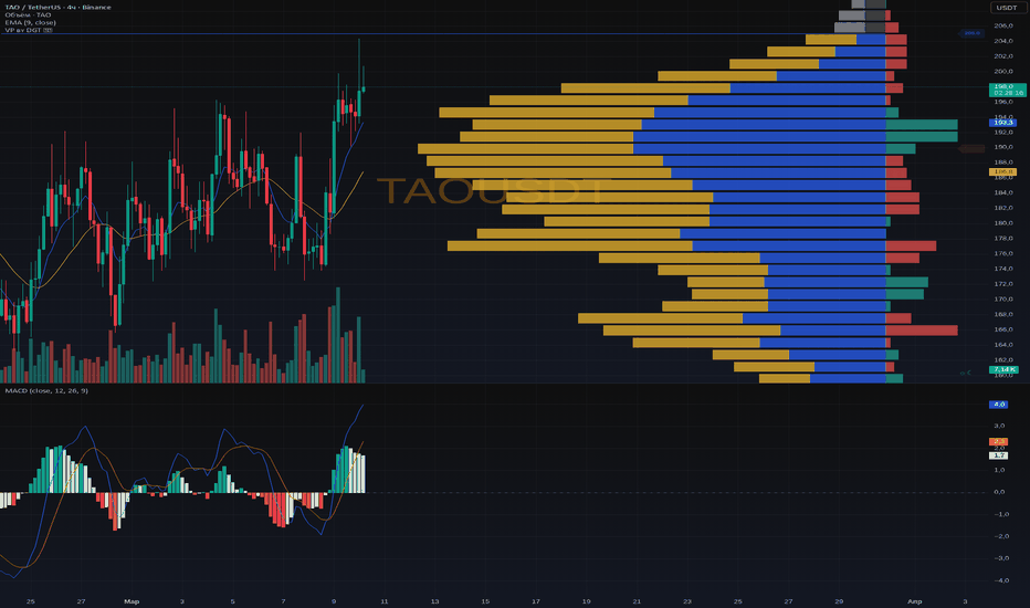 На 4-часовом графике цена выскочила выше плотного объёмного кластера 186-190 и сейчас идёт в зону тонкого объёма - здесь цену часто носят быстро. EMA развернулись вверх, MACD в уверенном бычьем импульсе, объёмы растут - классика пробойного движения ✅ Возможно, я ошибаюсь, но это больше похоже на продолжение тренда, чем на финальный выдох быков.