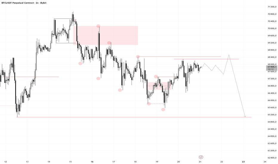 BTC ШОРТ МОДЕЛЬ: 2 диапазона, снятие ликвидности, ордер флоу.По BINANCE:BTCUSDT.P основным сценарием с текущих на данный момент для меня является уход ниже. Находимся сейчас в диапазоне 71750 - 67300. Конечно, сценарий со снятием ликвидности сверху был не в приоритете и текущая картина уже выглядит не так красиво, но пошортить можно. Я пока не тороплюсь, хотя агрессивный вход дали уже сейчас.