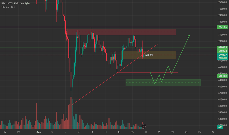 Текущая структура по-прежнему читается как аккумуляция, при этом цена вплотную подошла к верхней границе диапазона. Не исключаю вариант свипа в район 72k с целью закрытия недельной неэффективности — этот сценарий стоит держать в уме.