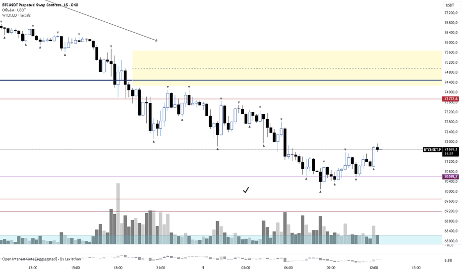 Факт остаётся фактом: коррекций нет, биткоин как падал, так и падает. Цена уже 70k. Я вполне допускаю прокол в зону 69 000–70 000, и именно оттуда рынку жизненно необходимо начинать разворот.
