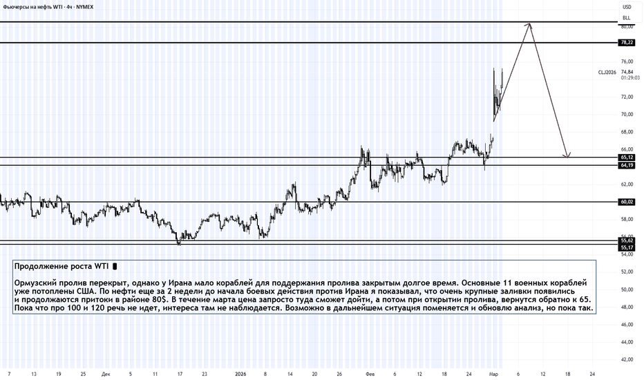 Продолжение роста WTI H4. 03.03.2026Продолжение роста WTI 🛢