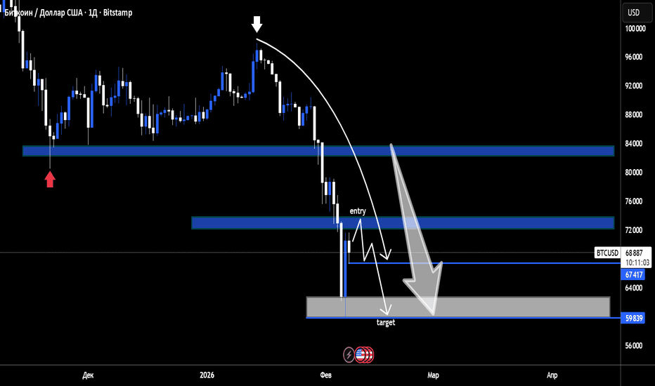 Пока BTC не вернёт и не закрепится выше зоны 80k+, структура рынка указывает на продолжение снижения. Рост цены стоит рассматривать как возможность для продаж, а не как разворот тренда.