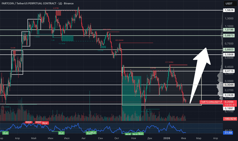 Отбросим шутки в сторону. Fartcoin (FART) в январе 2026 года показывает отличную техничность. Волатильность этого актива позволяет забирать движения, которые на BTC приходится ждать неделями. Сейчас цена подошла к интересной зоне подбора.