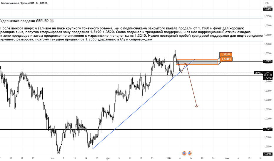 Удерживаю продажи GBPUSD H4. 08.01.2026Удерживаю продажи GBPUSD 📉
