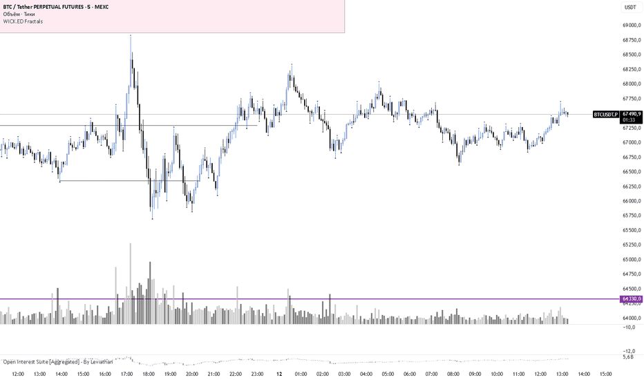 По BTC изменений нет, продолжаем находиться в боковом диапазоне. В среднесрочной перспективе хотелось бы увидеть постепенное сползание к обновлению лоя 60000. На младших таймфреймах цена сейчас проторговывает зону 0.5, но чётких торговых сетапов пока нет. Пока ожидаю формирование новых сетапов на младших ТФ,.