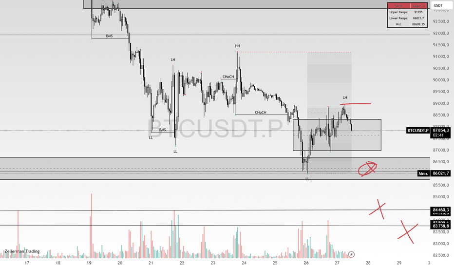 Возможны ложные выносы и повышенная волатильность вблизи ключевых уровней, поэтому входы рекомендуется рассматривать частями и только после подтверждённой реакции цены.