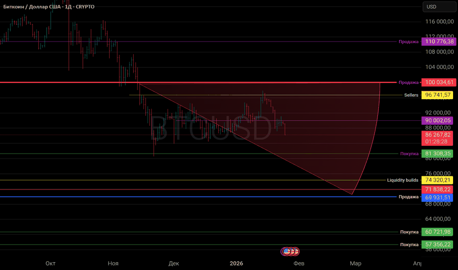 Что будет дальше? 30 января срок действия этих контрактов истекает. «Магнит», который держит цену, просто выключится. Как только это механическое давление исчезнет, биткоин превратится из «зажатого» актива в «свободный». Обычно после выхода из такой спячки движение бывает молниеносным и очень мощным.