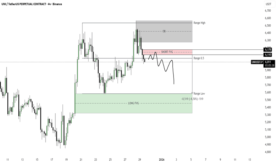 В целом UNIUSDT находится в зоне принятия решения: рынок ослабевает в падении, и дальнейшее направление будет определяться реакцией цены на текущую область спроса и ближайшее объёмное сопротивление.