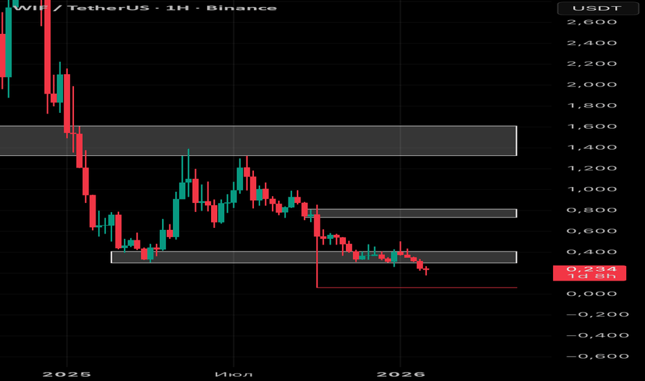 WIF 4H: импульсный слив — FVG сверху как точка для sell-side откНа 4H WIF видно ускорение вниз с крупной медвежьей дислокацией, после которой цена закрепилась внизу диапазона, ближе к 0 (discount). По пути сформированы два ключевых FVG сверху: ближний в районе ~0.211–0.214 и выше — более «премиальный» FVG около ~0.219–0.220 (зона вокруг 0.5). Пока рынок держится ниже этих неэффективностей, структура остается медвежьей и логика сводится к ребалансу: откат в ближайший FVG → реакция продавца/отказ от продолжения вверх → продолжение снижения с целью обновления локального лоя. Верхний FVG выступает как запасной сценарий для более глубокого ретеста, если цена начнет сильнее снимать ликвидность на коррекции, но он всё равно выглядит как зона предложения, а не база для разворота. DYOR