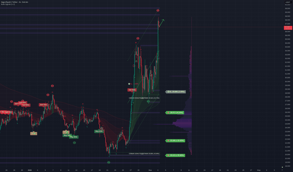 Hyperliquid: где останавливаются быки? Ключевые уровни на сегоднHyperliquid. Кто уже успел прокатиться на этом лифте с 20 к 37? По данным рынка, интерес к экосистеме резко вырос после свежих новостей о росте объемов и обсуждений новых фич, и цена просто выстрелила. Сейчас актив в центре внимания, а там, где толпа, там и лучшие возможности.
