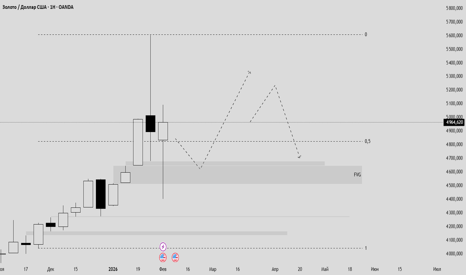 XAU 1H: откат в FVG под 0.5 перед забросом к ликвидности сверхуНа 1H золото после импульсного роста и снятия ликвидности сверху (длинный хвост вверху) закрепилось в зоне выше 0.5 и сейчас держится около текущего уровня. Под ценой отмечен FVG — логичная зона для добора/ребаланса перед продолжением движения. По разметке сценарий читается так: сначала откат в FVG (сбор ликвидности снизу и наполнение дисбаланса), затем разворот и движение вверх к ближайшим верхним целям, после чего допускается откат обратно. Ключ — реакция в FVG: если откупят и быстро вернут выше 0.5, приоритет остаётся за продолжением вверх; если цена застрянет в дисбалансе и начнёт принимать ниже, тогда рост будет выглядеть как распределение перед более глубокой коррекцией. DYOR