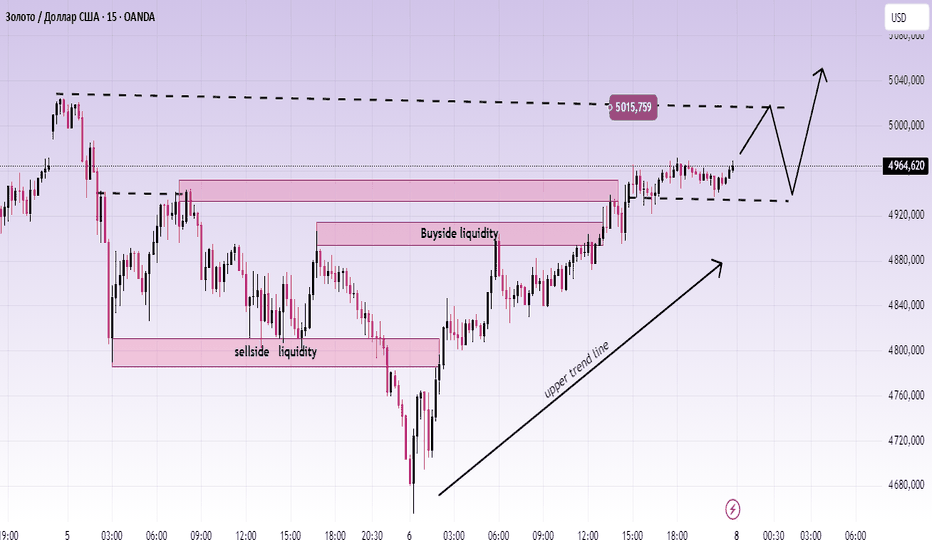 Бычье продолжение: Держаться выше 4,940–4,970 → вернуть максимум → искать ликвидность к 5,015, затем увеличение вверх, если цена примет.