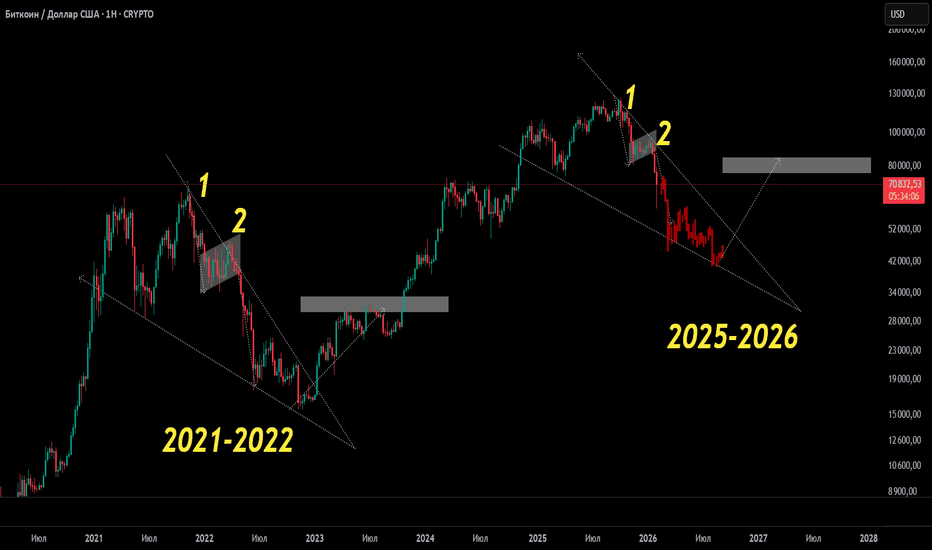 Биткоин начал свое падение от значений $90к и получил реакцию только в диапазоне $60к. Сейчас формируется интересная структура. Разворот ли это, либо всего лишь отскок - разберем в данном посте!
