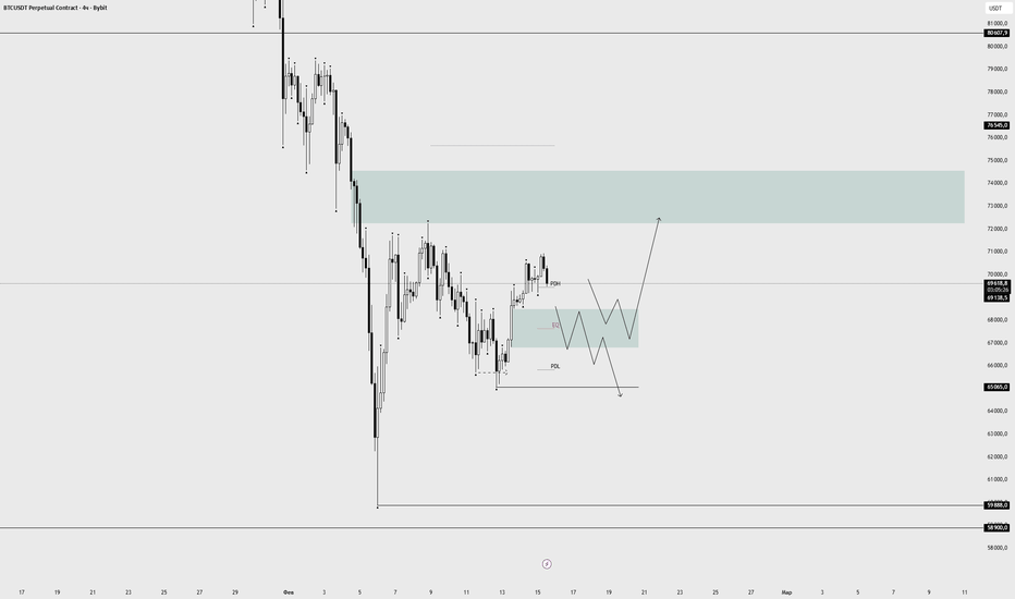 BTC 4H У нас есть два сценария роста к 72-73тысДоброго времени суток!