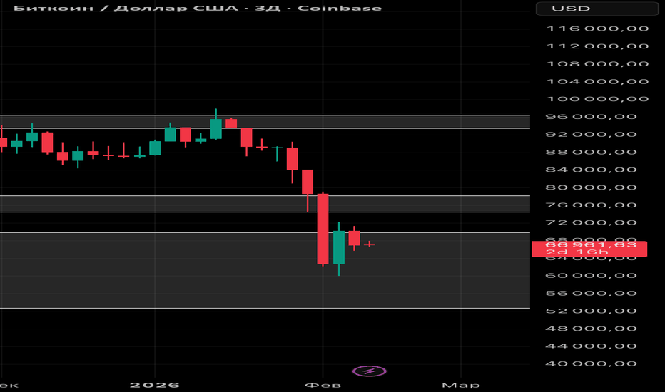 🎢 На данный момент начал реализовываться второй сценарий — формирование аналогичной консолидации в пределах $60.000–$70.000.