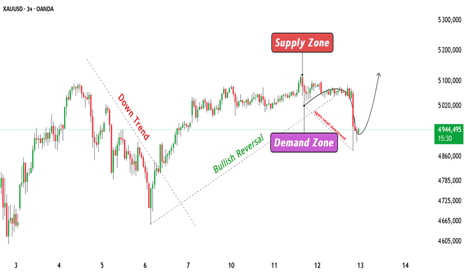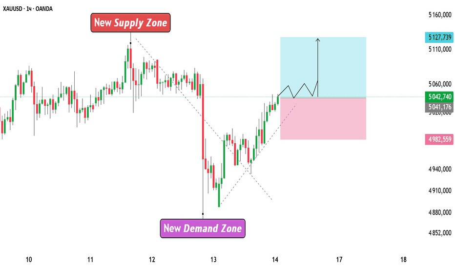 XAUUSD Ключевые зоны и прогноз волатильности на основе CPIЗолото остаётся в более широкой корректирующей структуре после недавней высокой волатильности. Ранее цена отреагировала от явной зоны предложения в диапазоне 5090–5120, где возникло сильное давление продаж и рынок снизился. Затем последовало резкое падение, сформировавшее новую краткосрочную зону спроса около 4900–4950, где покупатели вмешались и создали восстановление.