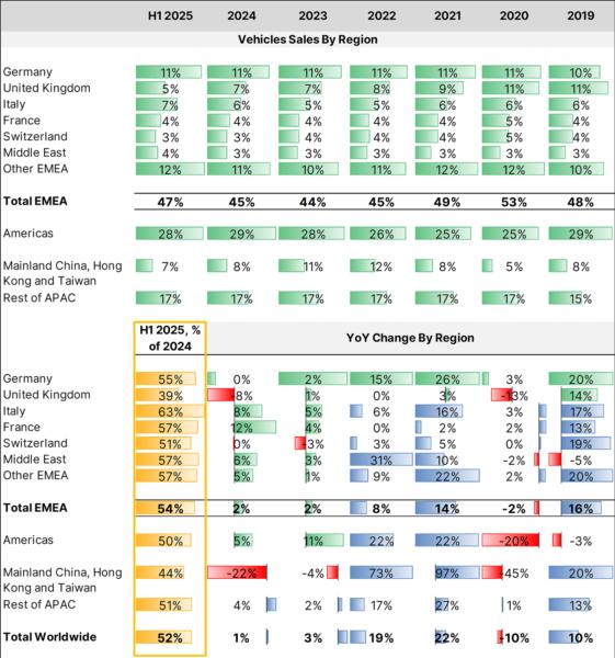Sales from cars and parts constituted 85% of total revenues in H1 2025. The balance is derived from their racing teams, the company-owned Mugello racetrack, the renting of their engines to other F1 teams, royalties, merchandise, financial services (leases, etc.) and so forth. Do U.S. Tariffs Matter Much?