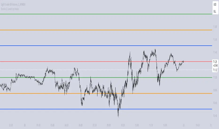 The script plots horizontal lines at .00, .25, .50, and .75 increments around the current price on the chart. It calculates these levels by taking the integer base of the price and adding the specified increments. The user can customize the color, thickness, and style (solid, dashed, dotted) for each level individually. The script plots a specified number of lines above and below the current price, extending them across the chart to provide clear reference points for potential support and resistance levels.