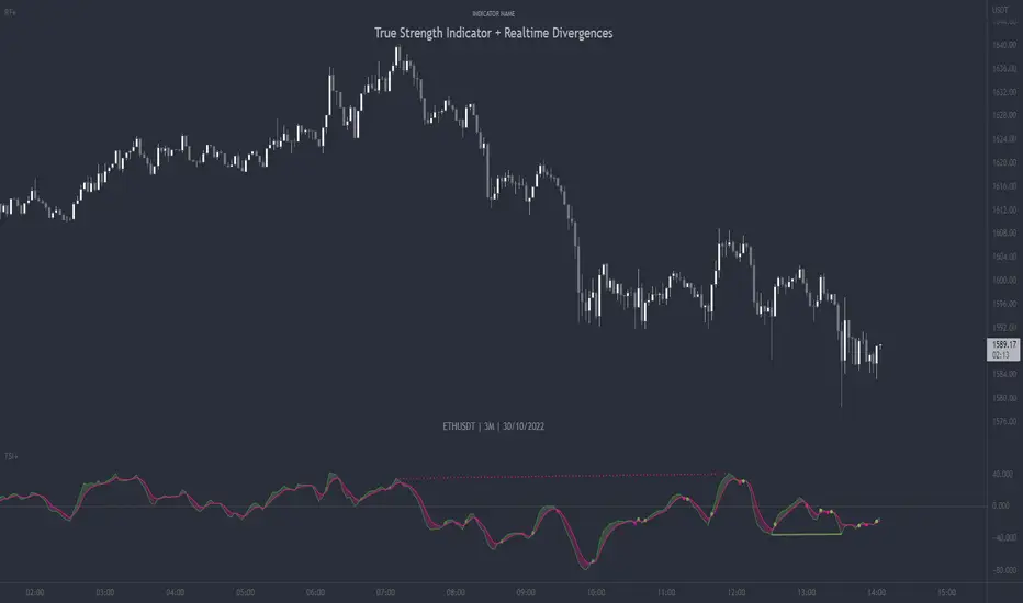 True Strength Indicator (TSI) + Realtime Divergences + Alerts + Lookback periods.