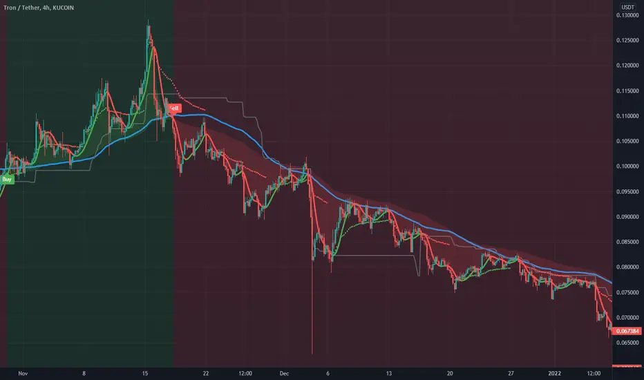 When a "SELL" signal prints, it is suggested to set a short order at the Blue trendline and wait until price rises up.