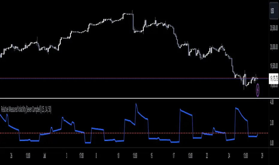 Line Plot: The relative volatility is plotted as a line, allowing you to quickly see changes in volatility relative to the historical average.