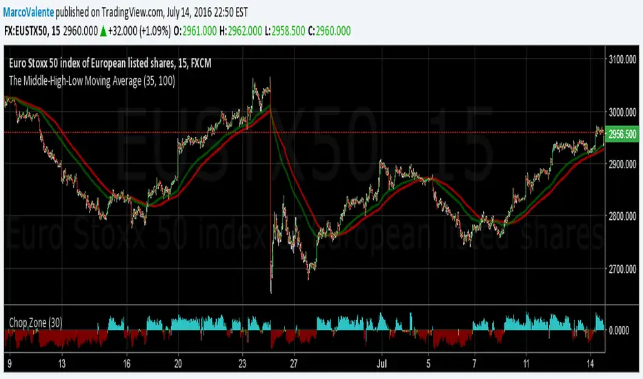 A standard EMA and a Middle-High-Low EMA give a good signal when they cross