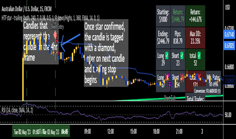 The HTF - Stars Strategy Script is provided for experimental and educational purposes only. Trading in the financial markets involves risk, and you should only trade with funds that you can afford to lose. The information presented in this script does not constitute financial advice or investment recommendations. Always conduct your own research and due diligence before making any investment decisions. The creator of this script shall not be held responsible for any losses or damages incurred from the use of this script. Historical performance is not indicative of future results.