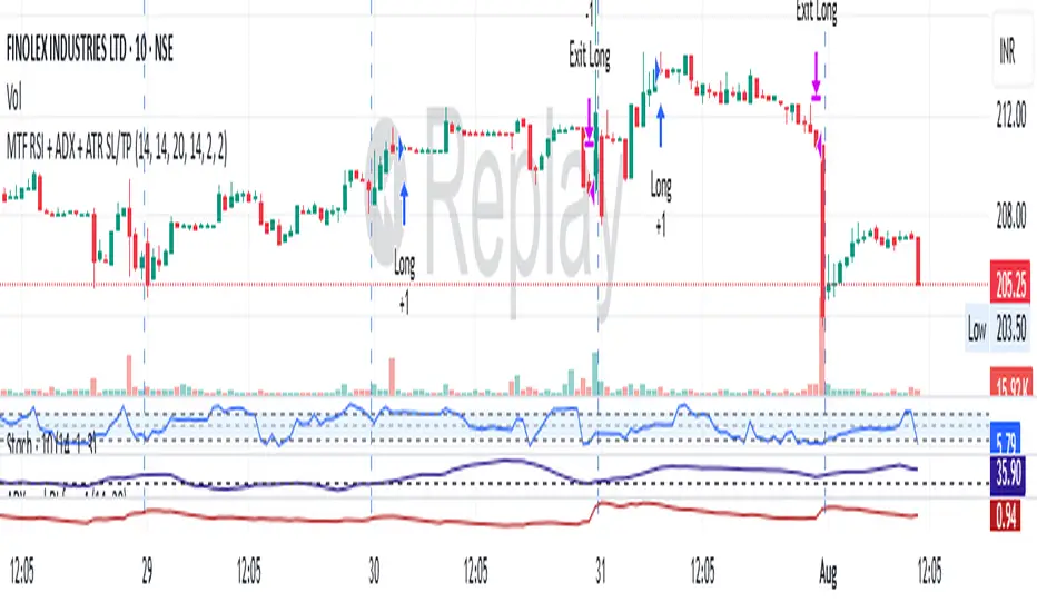 This strategy combines the power of multi-timeframe RSI filtering with ADX trend confirmation and ATR-based risk management to capture strong directional moves.