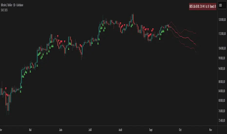 Instead of only marking BOS, this script learns from history and projects forward the median path of the most similar past cases, adjusted for volatility. It turns BOS signals into practical continuation scenarios.