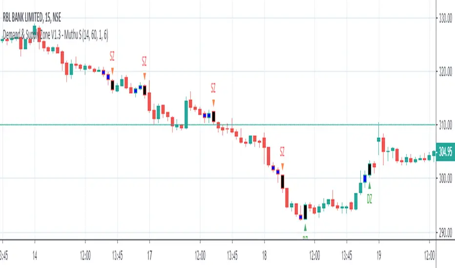 This indicator marks Demand and Supply Zone on the chart based on various inputs. It also marks Boring candle in Blue colour & Explosive Candle in Black colour.