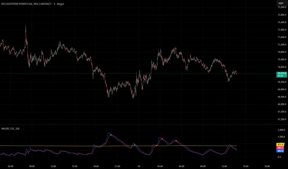 This indicator has both a Mean Reversion tendency and a trend-following tendency to find a point where the separation is resolved in the section where the trend bursts strongly. Therefore, it is most effective to use it in pressed necks or excessive deviation sections after a clear trend is formed rather than lateral security.MA Spread & Rank Convergence (MASRC)