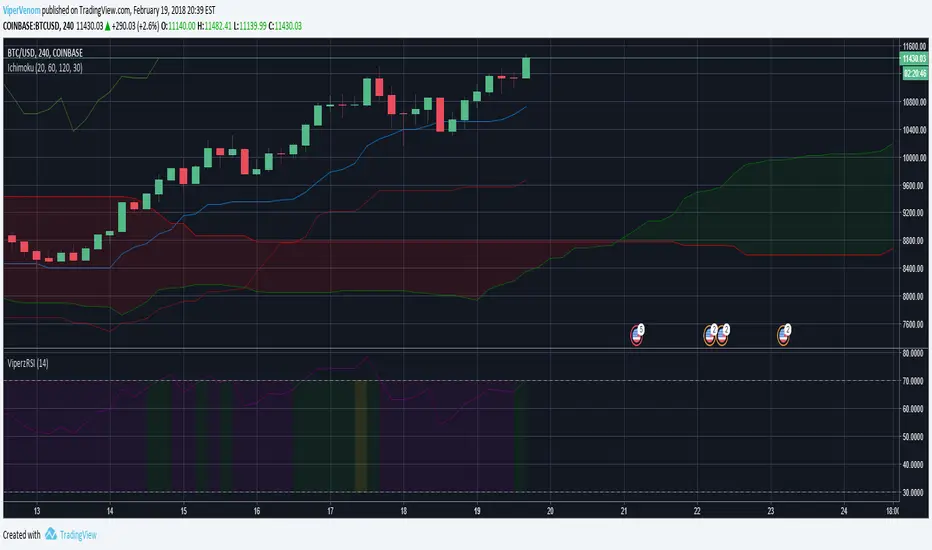 As noted previously, I have not changed the RSI formula in any way. You can see it's the same as the built in RSI. The difference is the default coloring and also I have made the color bands change color according to the intervals RSI value.