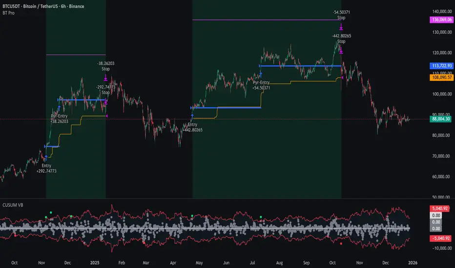 Backtest Pro is a drop-in, ready-to-use backtesting engine that links to your indicator with just a few simple connection lines. It provides more accurate intrabar trailing stops, multiple stop types (Points, ATR Multiplier, %), and a smoother workflow for greater precision and control.