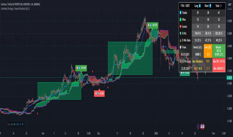 Several indicators and strategies concerning Ichimoku are already available on Tradingview, we are publishing this indicator to make this strategy even more accessible, what makes it original: