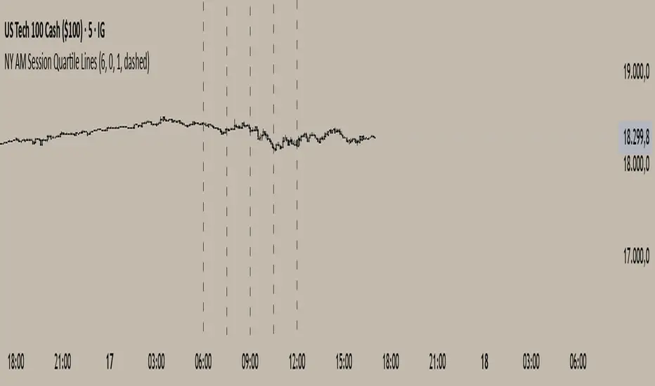 NY AM Session Quartile LinesThis tool automatically divides the New York AM session (6:00 AM - 12:00 PM NY Time, UTC-4) into four equal quartiles.