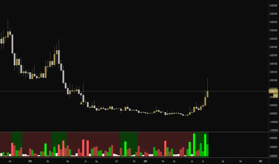 When the average % move in the bullish direction over the lookback window becomes greater than the average % move in the bearish direction over the lookback window, it will highlight the background either green or red, signifying a trend in price.