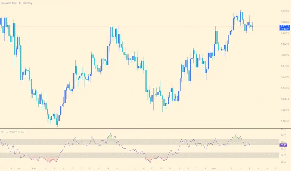 Standard RSI but with the option to add a shaded zone around the Upper and Lower Bands, based on an offset value.