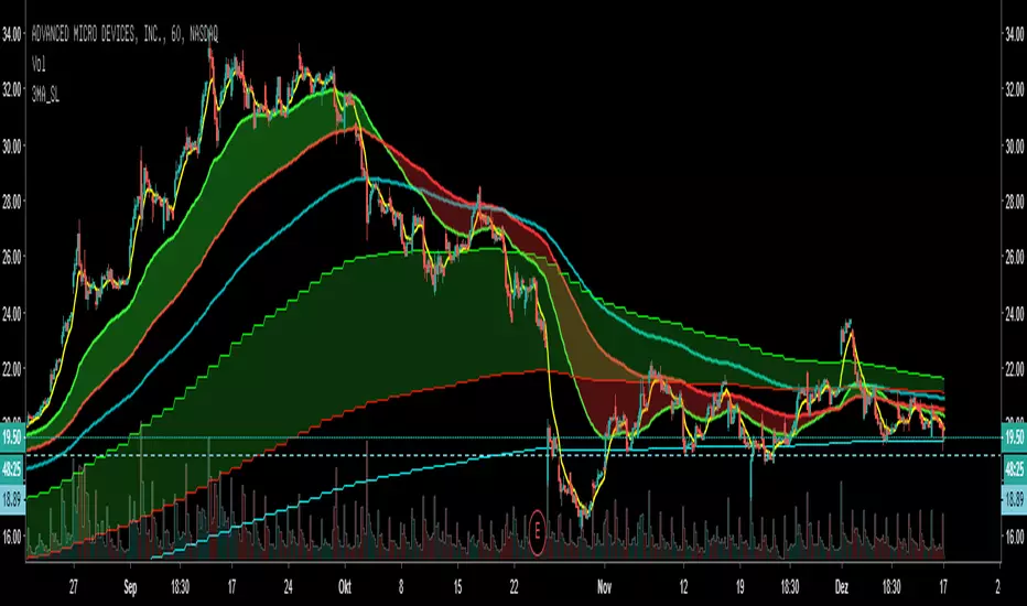 You have 3 EMA or SMA (you choose) having the current time Resolution. The next 3 EMA/SMA have an other Resolution (Default: Day)