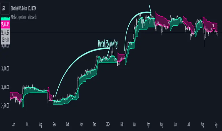The "Median Supertrend" is particularly useful in markets with rapid trend reversals and high volatility, offering an effective way to filter out noise and capture significant trend changes promptly.