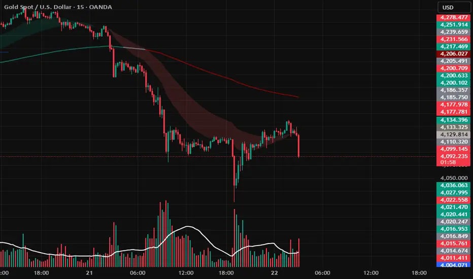 Red Fill: EMA 21 is below EMA 50 (Bearish Momentum).