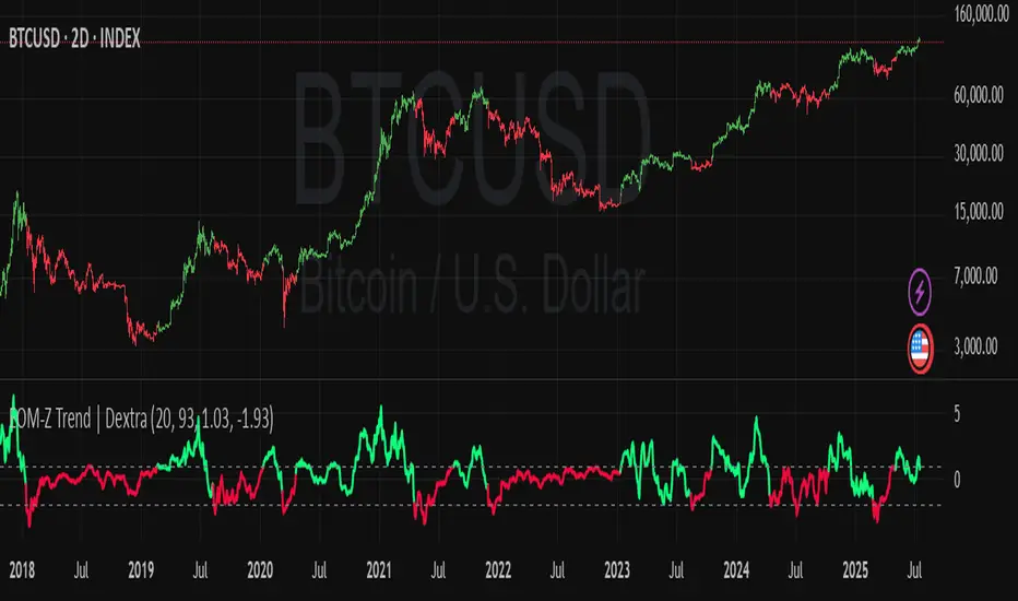 Installation: Add the indicator via the "Indicators" menu in TradingView and search for "EOM-Z Trend | Dextra".