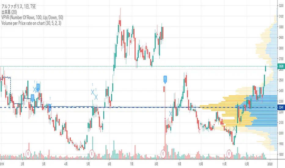 出来高に対して価格の動きが大きすぎる場合は”X"を表示します。