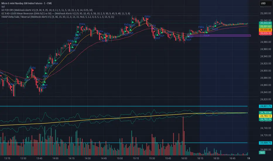 The FCR strategy trades breakouts and reversals that form immediately after the first 5-minute Opening Range (09:30 – 09:35 ET) — combining structural momentum (Fair Value Gaps) with confirmation beyond key OR levels.